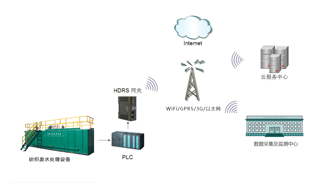 華辰智通自主研發的一款基于PLC遠程監控的紡織廢水處理系統通過HDRS遠程安全pcl通訊網關及3GRTU等設備監控各個環節的傳感器和各種設備的PLC或其他控制器,并通過WIFI、3G、4G、5G以太網等各種通訊方式將數據采集至HDRS設備云遠程綜合管理平臺或組態王等上位機上,通過短信預警、視頻監控等從而實現并節省大量的人力物力以及減少誤差的引入,使處理過程更加科學更加合理,提高了工作效率和工作質量。